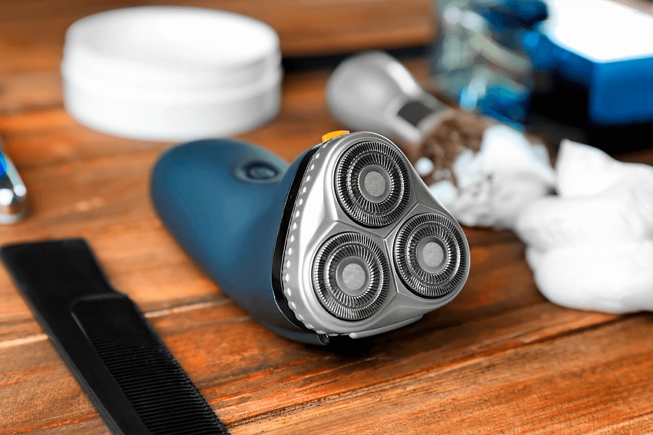 Ергономічний, із нержавіючої сталі. У комплектації кілька насадок для зручного гоління.